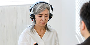 どのくらいの音の大きさまで聞こえるかだけでなく、音の高さごとのきこえの状況、言葉の聞き取りの状況などを「聴力測定」で確認します。